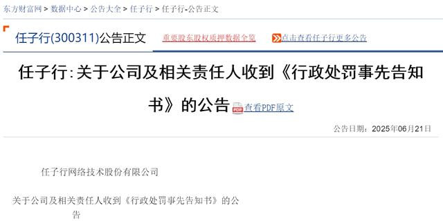 2025年6月21日,任子行(300311)公告收到中国证监会的《行政处罚事先告知书》(〔2025〕10号)。上海海汇律所梁律师提示:2021年4月27日(含)至2023年4月28日(含)期间买入该股,且在2023年4月28日闭市后当日仍持有的受损投资者可在公义之星网(gyzx365.com)申请索赔挽损。股票索赔的是历史法定损失金额,与目前是否持有股票没有关系。